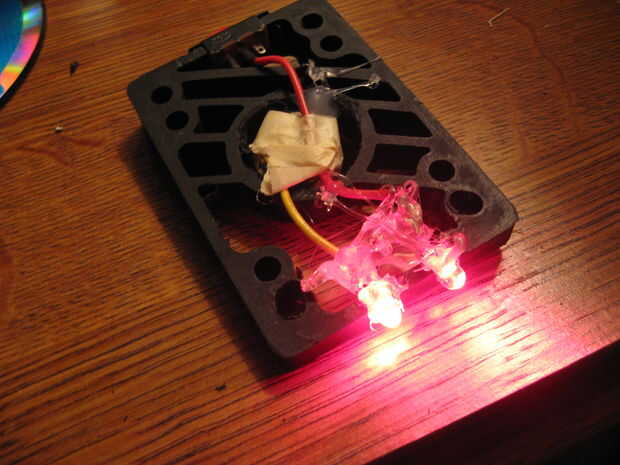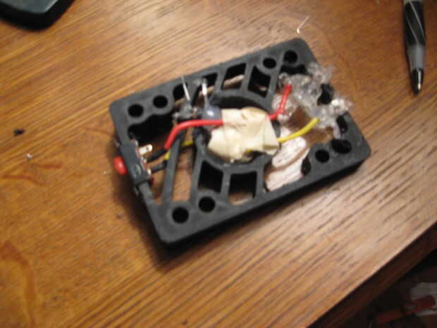 cubrí la parte posterior de los leds en caliente pegamento así si voy lanzó un charco de agua y de alguna manera consigue mojado costumbre corta el circuito... sugiero que haga lo mismo... caliente pegamento el interruptor adentro si theres cualquier margen de maniobra.