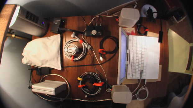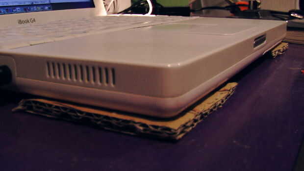 01/05/08 probar la canalización vertical en combinación con el Macbook Pro refrigerador. Todo sobre este escritorio excepto el ventilador y los oradores fueron transportados aquí en un cajón de leche, esta estación de trabajo temporal funciona perturbaciones de viento muy frío, no todo el exceso tampoco.