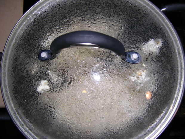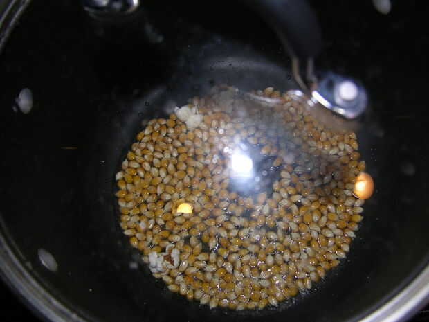 2. poner 3 o 4 granos de maíz en el aceite y cubrir la sartén.