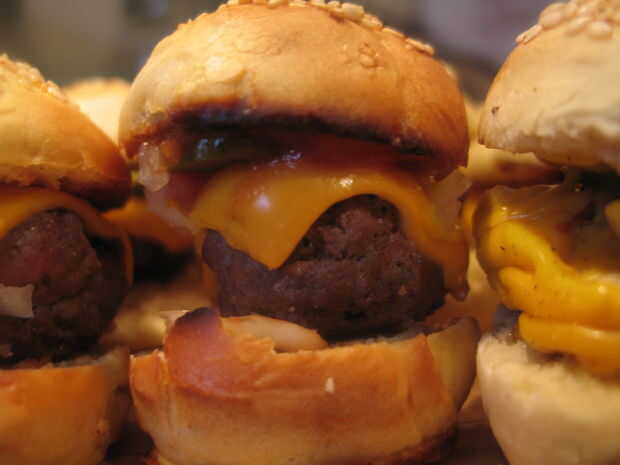 Posiblemente más comúnmente sabe como reguladores de la hamburguesa pero un poco más pequeño, que estas hamburguesas de tamaño de mordedura son perfectas para impresionar a tus amigos con tus canapés, o para niños pequeños. ... Es raro que se superponen estos dos tipos de plato, pero con esta receta lo hacen! Son ideal para niños ya que son una divertida versión en miniatura de una comida normal y algunos adultos menos maduros podría encontrarlo entretenido! El sorteo sólo real detrás de esta receta es que a menos que usted puede encontrar un supermercado que vende miniatura hamburguesa bollos (poco probable!) tienes que hacerlas tú mismo, que pueden ser un poco lentos.