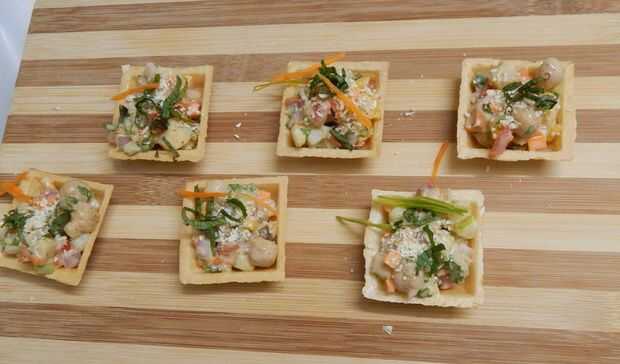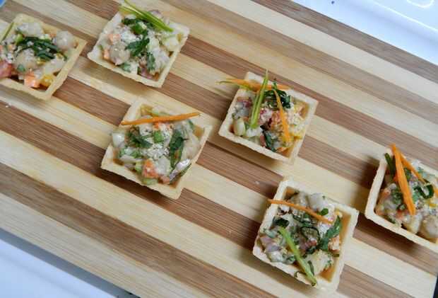 se pueden preparar todo de antemano pero fll canapés justo antes de servir o bien giran empapados!