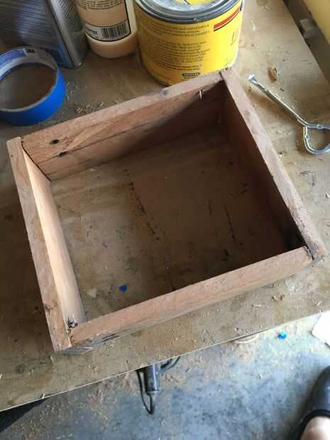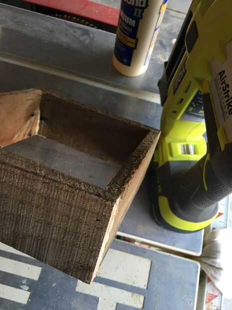 pegamento entonces brad clavo (para que el pegamento se seque y te puedes mover junto con la construcción) 4 piezas juntas para hacer una caja. Hacer esto 3 veces para hacer 3 cajas iguales.
