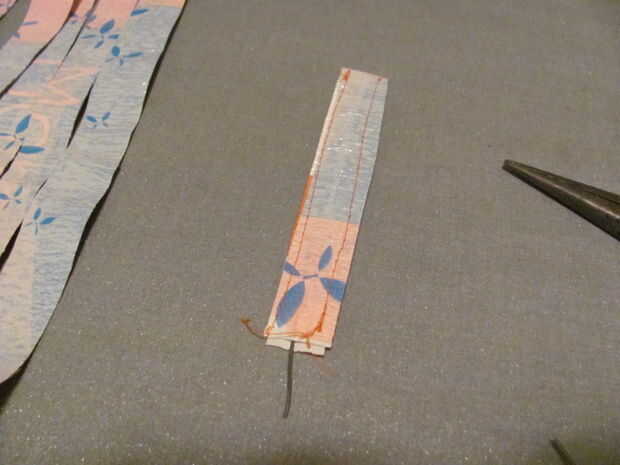Luego dobla las tiras de plástico fundidas largo y les cosió para arriba en los 2 lados largos. Utilizar una longitud de puntada larga, porque la longitud de puntada corta hace muchos agujeros muy juntos que pueden causar desgarro. (Ir como una línea perforada)