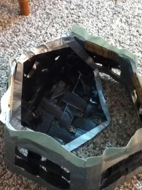Aquí es el caballero oscuro batman versión fabricada de cinta del conducto sobre todo.Es bastante áspero, pero tal vez te inspirar a alguien. ¡ Disfrute!Paso 1: Ajuste personalizado para tu cabezaLo que necesitarás:algunos cinta adhesiva y una bolsa