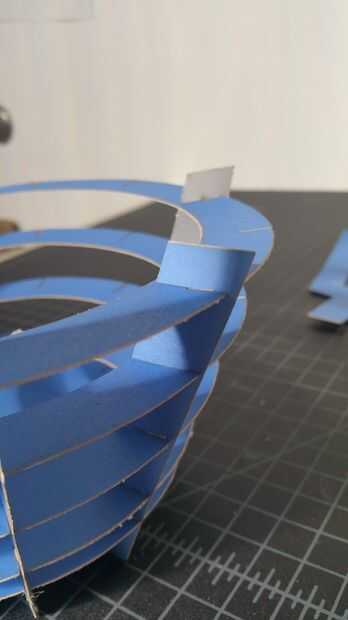 Para dar la cesta más estabilidad, ranura-en los restantes escalones diagonal en los círculos horizontales. Cuando haya terminado, se deben llenar todas las ranuras y la canasta debe ser bastante constante.