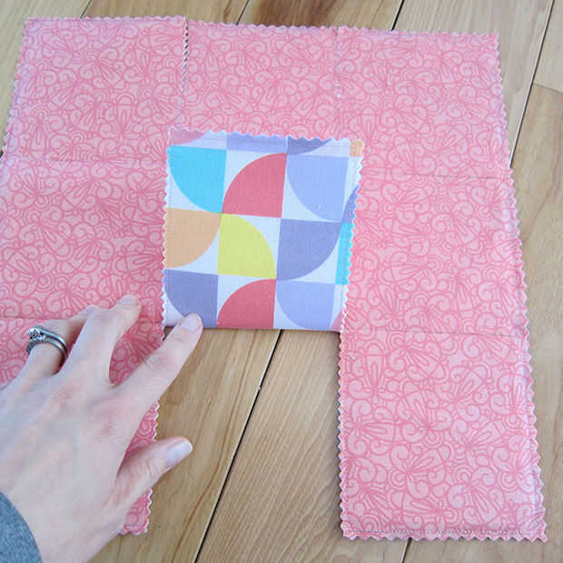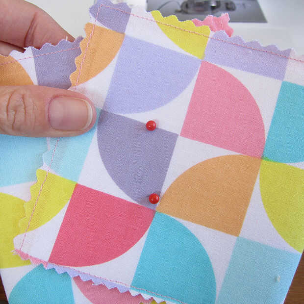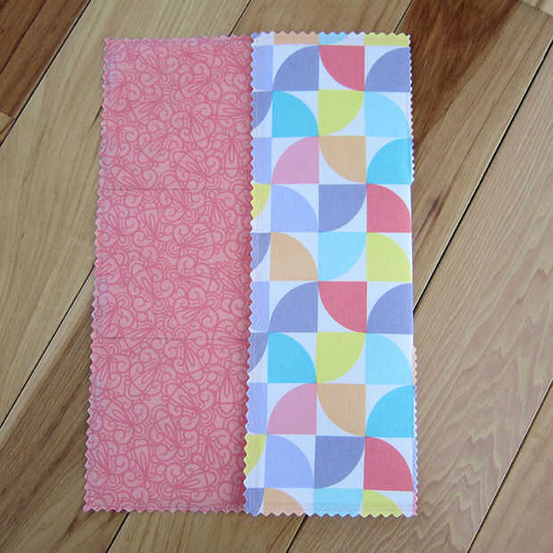 • Ya que tenemos doble tela reforzada cuadrada los ojales van a funcionar mejor. Doblar las aletas (media aleta primero y dos consejos cruzado sobre la otra). Marca donde los ojales se metiendo alfileres a través de todas las capas de tela y dibuja una línea con un marcador de tela desaparece. Mueva hacia atrás una capa de tela y marca donde va a ser el segundo ojal.