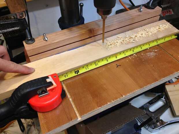 Otra vez, taladré agujeros de 13/64" a intervalos de 3/4" para sujetar las barras de la parte posterior. Configurar el medidor de profundidad para parar en el aproximadamente 1/8" de perforación a través de todo el camino. Perforación de una superficie plana es mucho más fácil, así que salte la rama y hacen la parte delantera y trasera como esta si usted valora su tiempo.
