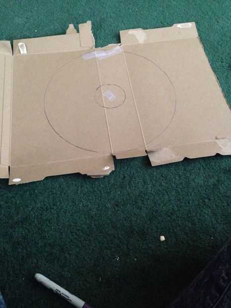Para los dibujos iniciales Dibujamos un círculo en el cartón con la brújula como siempre grande que desea que la base de la cesta que, hice mío bastante pequeña como yo quise a cubilete. Desde el centro del círculo que marcó haga otro círculo más grande (es la altura de la canasta). Si penetra un agujero en el centro puede utilizar cinta para parchearlo.