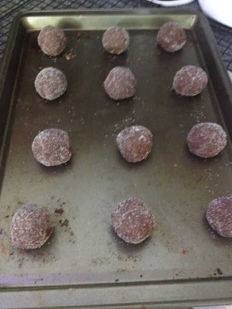 Forma de una cucharada de masa en una bola, rodar sobre el azúcar y colocar en placa para horno sin engrasar