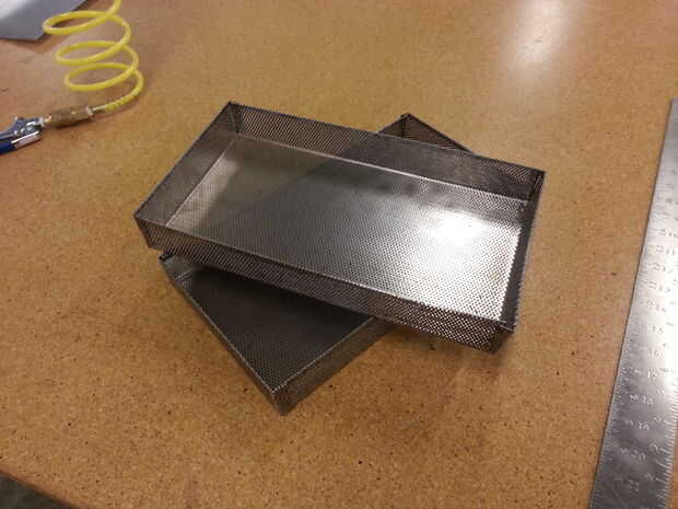 Metal de hoja (aproximadamente 24 calibre, perforado en este caso)