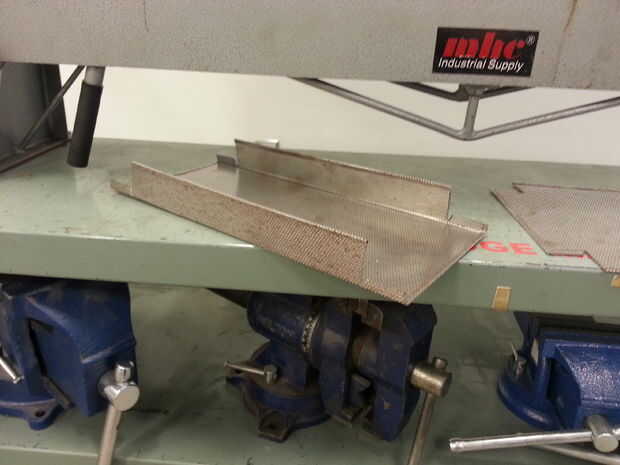 Después de que finalicen las curvas largas, quitar los dedos del freno en una configuración tal que se deje espacio para los lados verticales mientras que también proporciona la suficiente sujeción zona para las restantes curvas cortas. Como se mencionó antes, las pestañas pueden o estar ubicado dentro o fuera de la bandeja de acabado. Probé ambos y encontré que ubicar las fichas en el exterior de la bandeja hizo un trabajo mucho mejor de cubrir cualquier potencialmente filos de la chapa. Doblar todos los lados cortos restantes de las bandejas y eso es todo! El proyecto ha tomado forma.