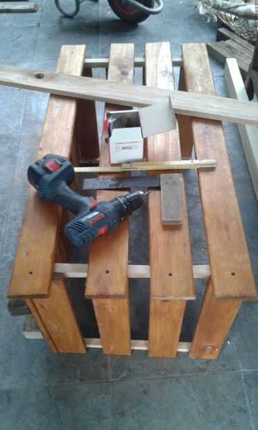 les dejo imagenes de las herramientas: ATORNILLADOR ELECTRICO BOSCH (puede ser cualquier marca), tornillos parquer, metro de madera, madera de escuadra y