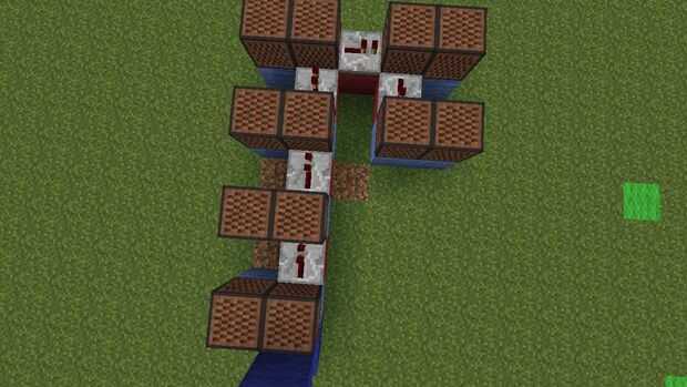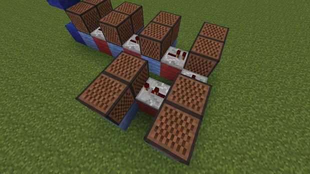 Ahora ponga sus repetidores en todos los bloques rojos. No cambie las garrapatas sobre cualquiera de ellas pero la última de ellas en el pasado cambiarlo una vez.