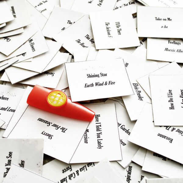 Decidí ir con tarjetas rectangulares porque algunos de los títulos son bastante largos y quería incluir a un artista (tal vez no la artista dependiendo de su sabor) en la tarjeta. Además de la forma rectangular ayuda a ahorrar papel importante con 177 tarjetas! ¡ UF!