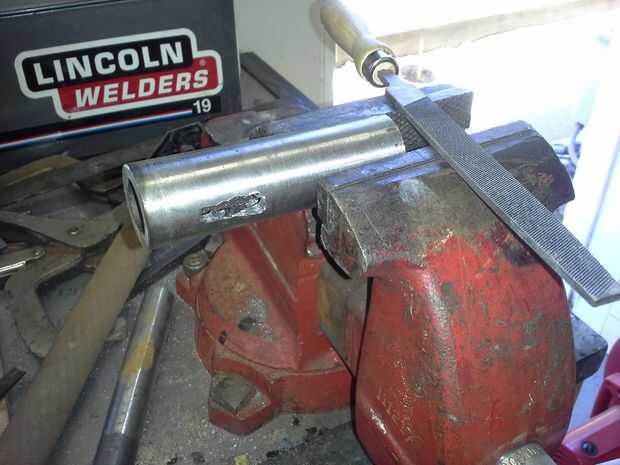 Aquí es donde la tubería de pared gruesa de 1/4" detrás que me muerda. Hay poco o ningún espacio para la ranura del archivo porque el archivo golpea en el interior del tubo. Tardé para siempre conseguir la ranura abrió un agujero que fue limpiado para arriba. Supongo que utilizando una dremel aquí sería de vino en mano pero no tengo uno.