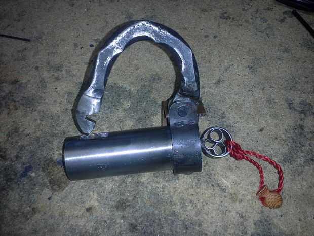 Marcó el final del grillete con pasador de fieltro y deslice el pestillo en y aprovechado en él para marcar donde estaba tocando. Asegúrese de que el pestillo de su perpendicular al extremo de grillete.