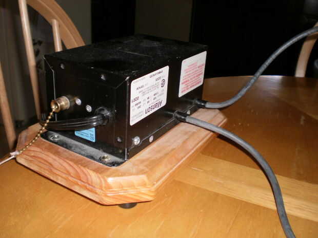 Una cosa para recordar acerca del uso de NSTs: Nunca mueva o levante un NST terminales de cerámica! Son frágiles y pueden agrietarse o snap de, luego tienes nada más que un tope de puerta. Siempre levante NSTs por el caso. Una cosa que puede hacer para mejorar la portabilidad de una NST es montarlo sobre una base. Pongo mi 7.500 voltios Allanson NST en una placa de pino shellacked, equipada con cuatro aparato «patas de goma.» Esto aísla el NST de la mesa y me da un lugar práctico para agarrar y levantar.
