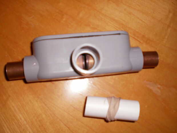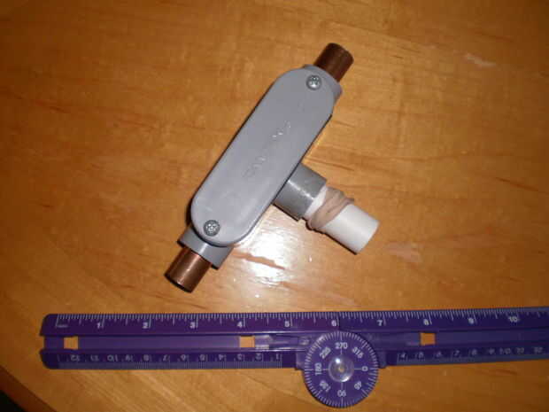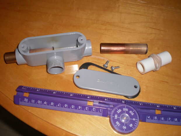 Para hacer uno necesita caja de conexiones eléctricas en forma de T, algunos pequeños tramos de tubería de cobre y un trozo de tubo de PVC. Para una bobina pequeña de mesa hará un empalme de 1/2 pulgada. Estos se venden en ferretería y hogar. Se utilizan para unir Inicio cableado de tres líneas.