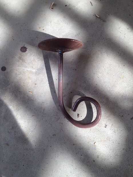 Con el plato y el 8mm barra necesitan ser soldadas con autógena juntas. Porque tenía muchos de ellos no hice otra plantilla para obtener la barra redonda en el centro del plato y les viró todo.