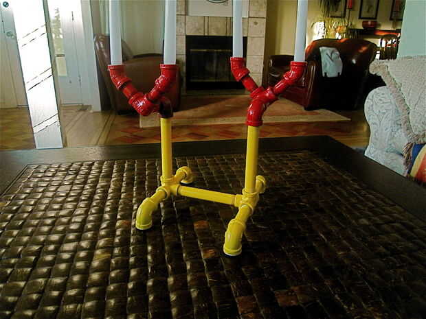 Para hacer el candelabro, lo primero que necesitarás es algunas tuberías. Se adquieren fácilmente en cualquier plomería o ferretería. Yo tengo la mía en el Hardware del centro de San Francisco por 40 dólares. Incluso no parece que la mente me sentada en el piso jugando como he trabajado en mi diseño de elevadores. Se puede utilizar tubería de hierro galvanizado o negro, pero el tubo negro es más barato, así que me fui con eso (ver siguiente paso lista de piezas completas).