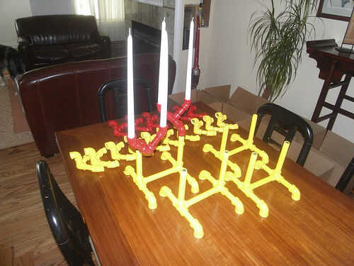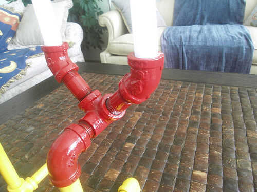 Ya que estos son verdaderos tubos creo que sería interesante equipar con una alimentación de propano y mantos para hacer una lámpara de gas. También he visto los tubos utilizados como una lámpara de aceite. Puesto que usted puede individualmente polvo capa las conexiones, es posible hacer esculturas muy grandes incluso con un pequeño horno. Me gustaría crear algún tipo de estructura torre multicolor.