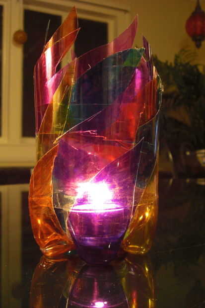 No olvides nunca deje velas sin supervisión. Nos hemos quemado nuestra durante horas con no problemas-en realidad esperábamos que los bordes de plástico rizar más que tienen y sentimos que nuestro ser perfectamente seguro para usar en interiores pero mantener un ojo en él. Tal vez prefiera usar al aire libre debido a la quema de una vela dentro de la plástica, pero fácilmente podría ser hecho en una lámpara si había conectado un led en él o lleno de luces de Navidad.