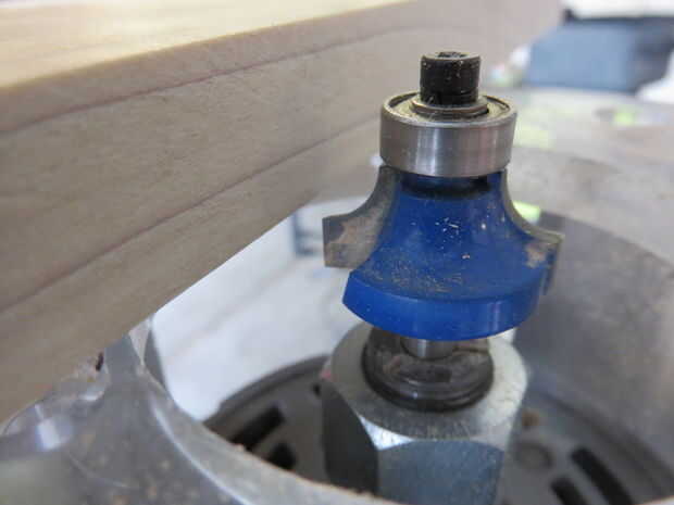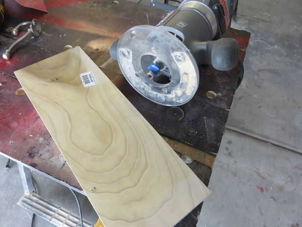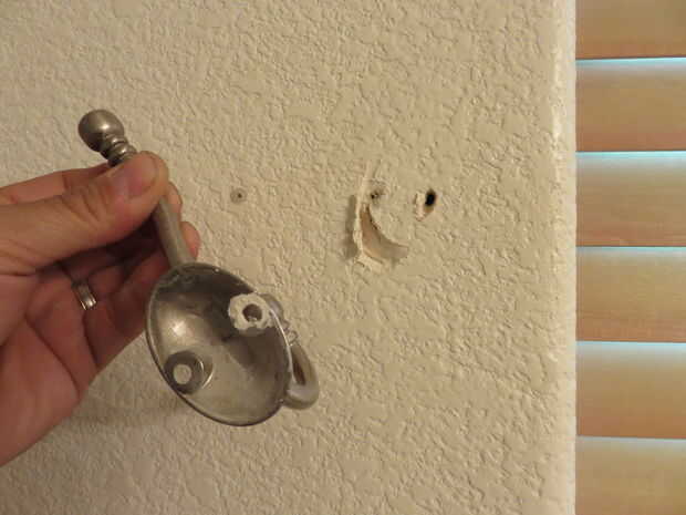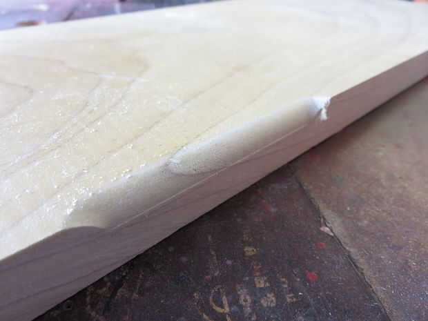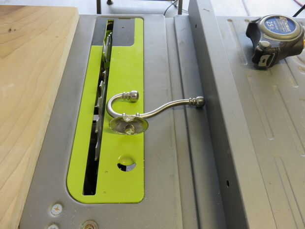 Usé el gancho para adivinar una medición sobre la altura debería ser el respaldo de madera. Sólo quería un poco más alto que el gancho sí mismo. Después de cortar la madera el borde redondeado encima con un 3/8" broca de la fresadora. Se pueden ver los viejos lugares de gancho en las 2 últimas fotos.