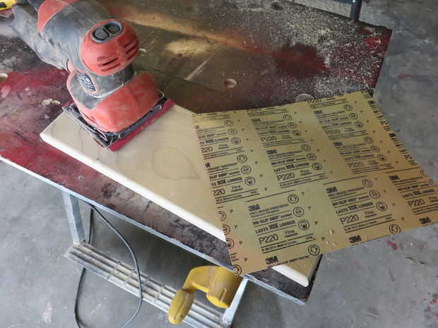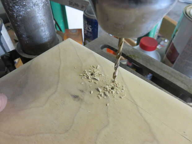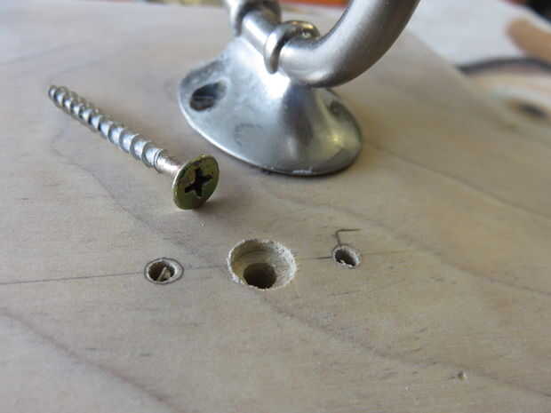Usando mi fiel Plaza marqué los agujeros para el hardware. Seis agujeros perforados y había avellanada dos para montaje en la pared. Finalmente los que serán cubiertos por los ganchos. Antes de pasar lijar con papel de grano arena 220.