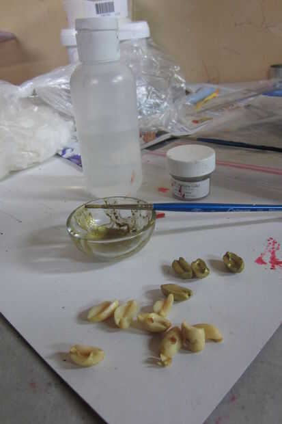Este material es totalmente opcional. Estaba haciendo esto para una boda, así que decidí ir con los cacahuetes dorados para un look más clase. Puede tomar cacahuetes, rompen en dos mitades y luego pintarlas con una mezcla de extracto de limón y el polvo del lustre del oro comestible o simplemente picarlos pequeños (como helado de cacahuetes) para espolvorear en la parte superior.