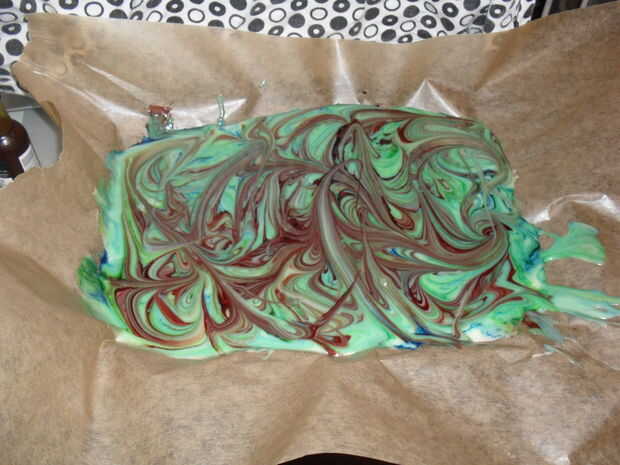 Normalmente me moje mi horquilla en algunos alimento colorante y remolino a través de la mezcla en la sartén... Lo * poco * trabajado aquí... pero esto era sobre todo la limitación de daños.