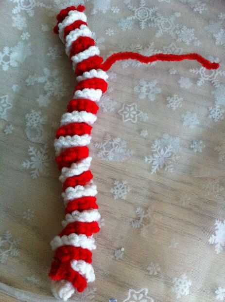 Una vez que lo ha hecho con el blanco y rojo tuerza twist el limpiador de pipa en el bastón de caramelo a continuación, doblar para hacer una forma de bastón de caramelo. Y su hacer felices fiestas todo el mundo!