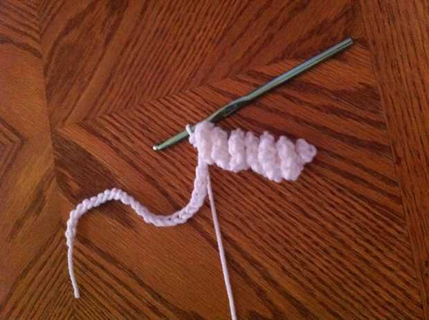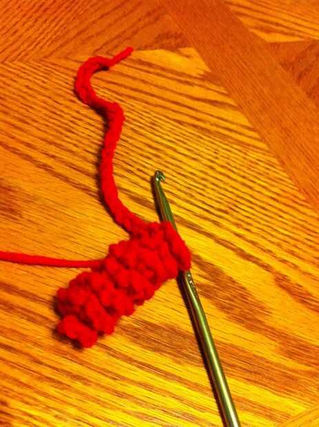 Primer ch 50 de rojo luego sc en el ch adscrito del gancho. ganchillo 3 MP en cada ch fijar apagado.