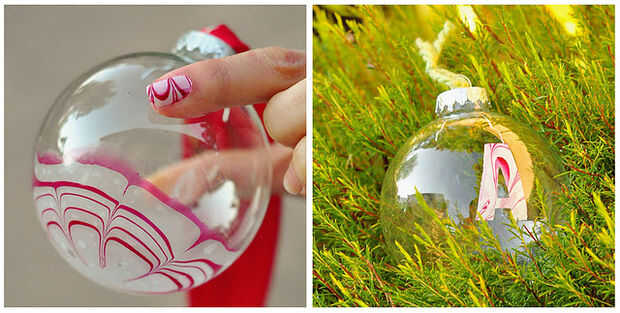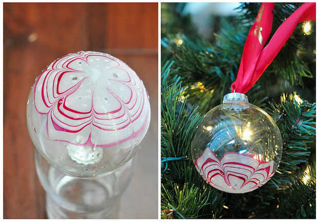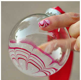 Recientemente vi una técnica marmolizado clavo en Pinterest y era así que inspirado para intentarlo.  Después de varios intentos finalmente me puso la técnica de uñas y decidió hacer algo más con él. Tomando los ornamentos de cristal que compré de suministro de arte de Michael, he creado un ornamento de mármol de agua.  Pueden ver mis tutoriales en vídeo sobre Cómo marbleize un adorno y Cómo agua mármol clavos.