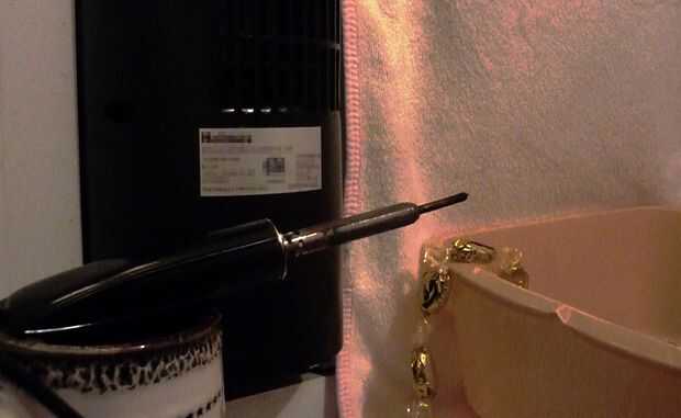 Organizar tu soldador para descansar en un soporte en un ángulo que se encuentra cómodo. Pongo mi hierro en una taza de café, con la punta horizontal, oblicua a mí.