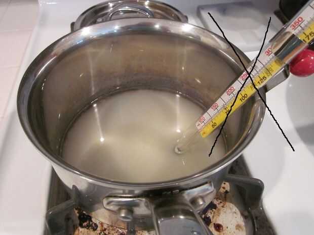 Para la Prueba de la agua fría: 1/2 a 1 cucharadita de jarabe (mezcla de caramelo) se deja caer de una cuchara limpia en un recipiente de agua muy fría (no helada). Examinar rápidamente y recoger con cuidado el azúcar de la agua fría.