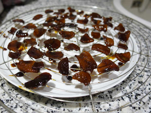 Deja enfriar durante la noche, y luego picarlos finamente como sea posible. Esperemos que encontrarás que las piezas de jengibre pegajosas se convierten en migajas mucho secas cortarlas y el jarabe se extiende sobre un área superficial más grande. Y, probablemente, en la ropa así.
