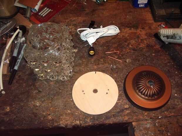 También necesita un cable de enchufe, interruptor y lámpara de la lámpara. He encontrado un cable de candelabros en un centro de construcción que tenía tres todos los elementos incluidos.