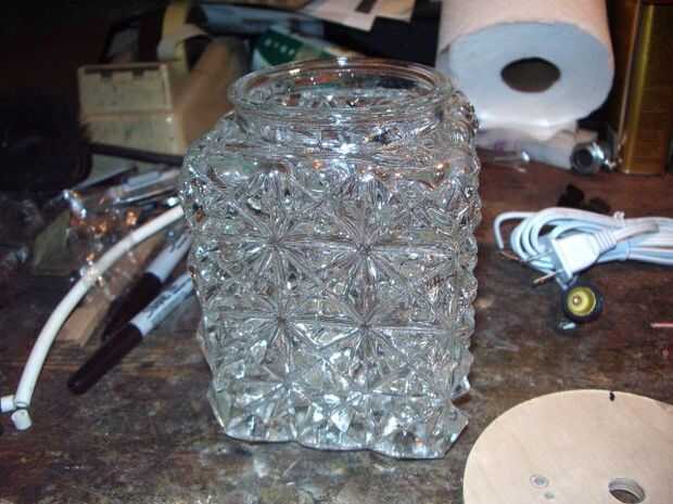 El tarro del caramelo será invertido y colocado encima de la parte del accesorio ligero de techo y Unido usando los dos tornillos en forma de L para tirar el interior hombro del frasco contra la base. Supongo que usted podría simplemente unir estas partes, pero que sería bastante difícil de cambiar el foco de luz en el futuro. Mediante el uso de los tornillos, todo puede desarmarse con facilidad.