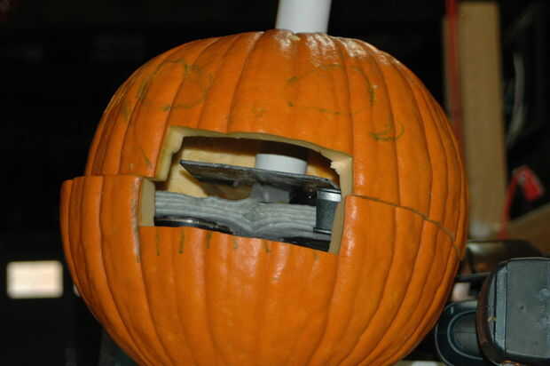 El sistema de propulsión dentro de la calabaza es dos fans que han tenido sus láminas substituidos con el disco de tela. El caramelo se canaliza en los discos, disparó fuera de la boca. Trabaja la misma pelota de tenis de manera o lanzadores de béisbol de trabajo.