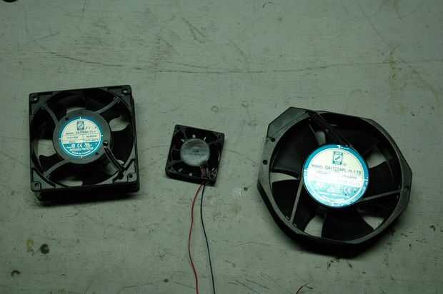 Los ventiladores que usé era fan de 110v AC. Más que probable que fueron utilizados para el enfriamiento en un aparato de consumo. Usé algunos cables eléctricos cortados que tuve que añadir enchufes a ellos que pude ejecutarlos justo al lado de la alimentación principal.