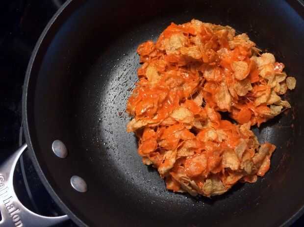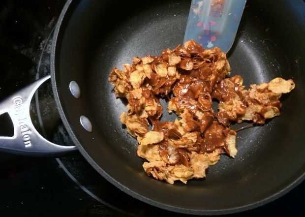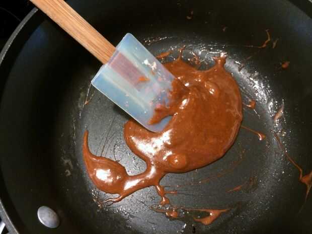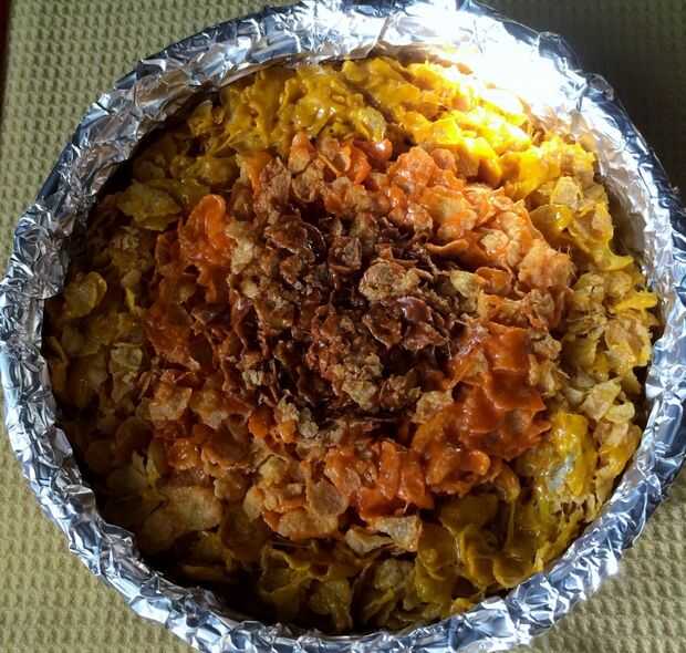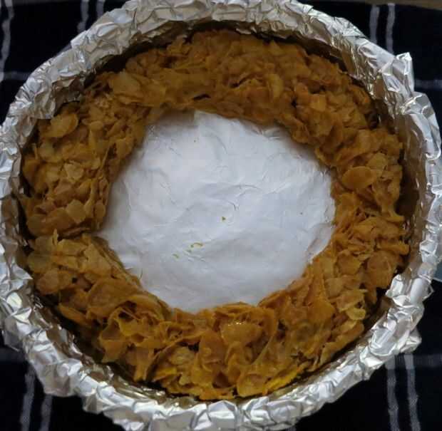 Repita con el resto de los ingredientes para hacer la capa marrón, presione en el centro de la sartén uniformemente. Deje que se enfríe.