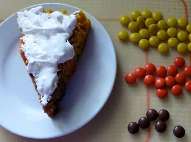 Superior de la cuña con crema de malvavisco y añadir pedazos de Reese, topping capa de capa amarilla con Reese amarillo naranja con caramelos de naranja, etc.. Mina parece más "Maíz indio" puedes decorar tuyo en tu tipo preferido de maíz de caramelo.