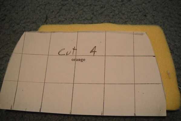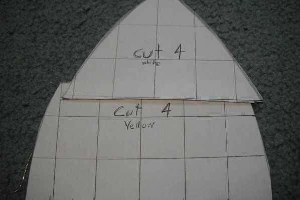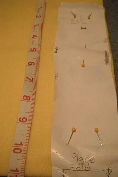 Para el borde, cortar sobre un 2 1/2 pulgada de banda ancha en un pliegue. Puesto que mi cabeza es 22 pulgadas alrededor, cortar 11 pulgadas en el pliegue. Corte dos de amarillo.