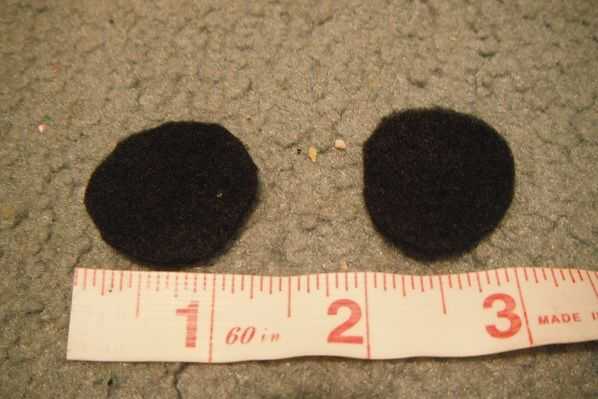 Los ojos son círculos negros justo con un diámetro de aproximadamente una pulgada.