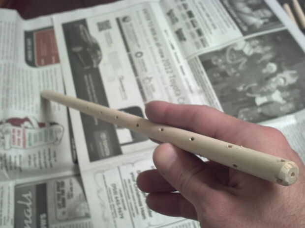 En este punto, puedes remojar el pasador y palillos de dientes en el colorante de alimento verde para darle un toque un poco más festivo. Lo probé en potes de dulces que hice después de este prototipo. Sin embargo, encontré que en forma concentrada, el colorante alimentario no teñir la madera tanto como esperaba. Todavía vale la pena aunque!