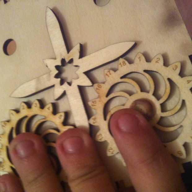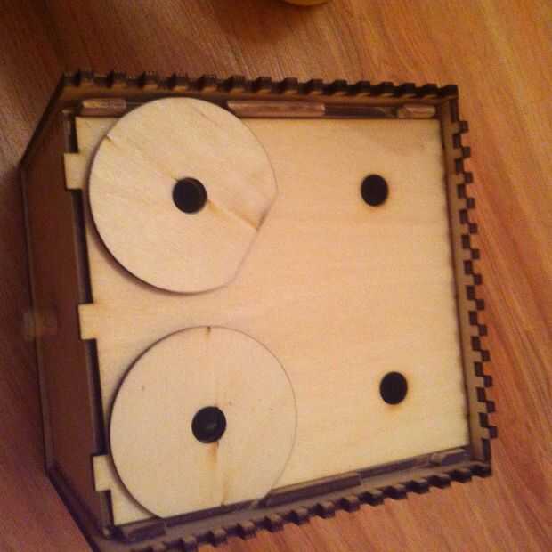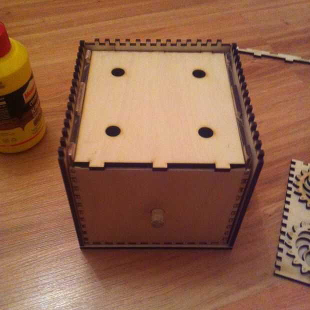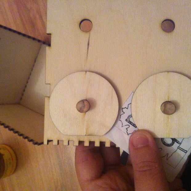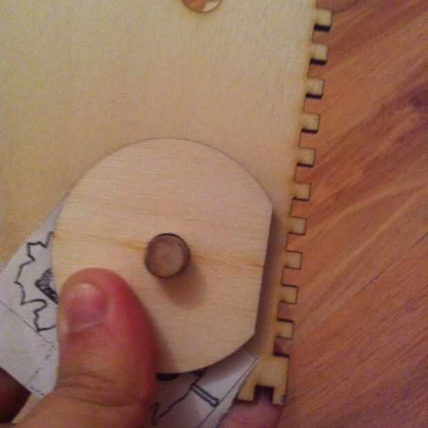 Agregar una pequeña gota de pegamento dentro del círculo. Tenga en cuenta que esta parte debe ser fijada a engranaje + clavo parte y no en top-box-Part. Cuando te gires engranaje a gire demasiado esta parte.