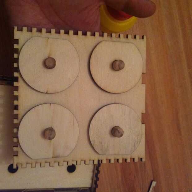 Repárelo con la mano y girar todo el decodificador parte. Añadir a uñas en esta posición exacta como en la foto de la rueda. Añadir pequeño pedazo de papel para evitar contacto pegamento con parte de la caja de arriba y parte de la rueda. También al quitar esta pieza de papel en par de rueda de engranaje clavo 10 minutos girará fácilmente.