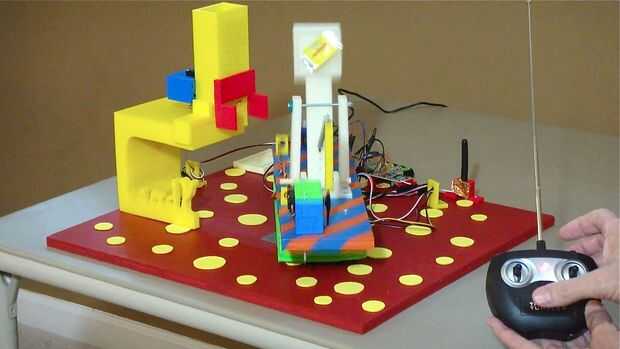 Una catapulta eléctricos carga automáticamente un pedazo de caramelo desde el dispensador de la torre. Al comando del control de radio, la base giratoria hace pivotar para apuntar en la dirección deseada. Presione otro botón y el caramelo se dispara hacia el destinatario, luego vuelve a cargar la catapulta.