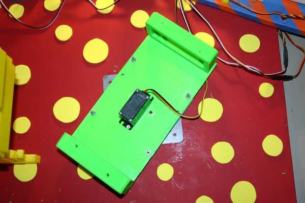 Asegúrese de que el conjunto de servo y cuerno en una de las posiciones extremas y es capaz de girar donde usted quiere que vaya antes de apretar los tornillos a través de los agujeros.