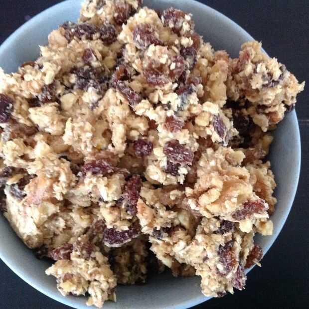 aquí es una receta super sana, super fácil y super buena para hacer.Barritas de avena con pasas de uvaPrecalentar el horno a 350 grados.Se reúnen todos los ingredientes, prepárate tu tazón y su mezclador.2 1/2 tazas de pasasjugo de limón 2 cucharadas